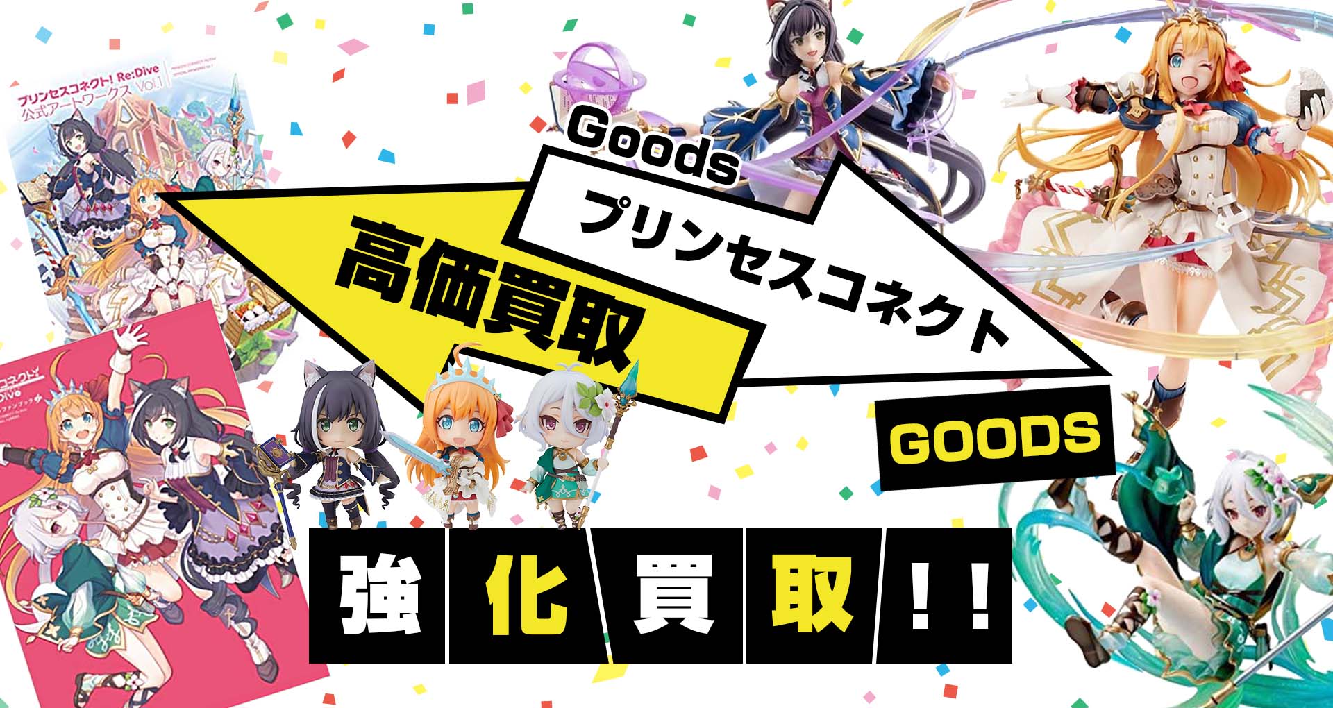 プリンセスコネクトのグッズ、フィギュア、ゲーム、レプリカ、アクリルスタンド、抱き枕カバー、タペストリーなどのグッズを各種買取いたします。最新のものから当時物のグッズまでなんでも買取!