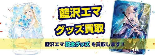 ぶいすぽっ!の藍沢エマグッズを買取いたします。誕生日記念グッズ、活動周年記念グッズ、アクリルスタンド、タペストリー、缶バッジ、フィギュア、ポストカード、VSPO GEARゲーミングキーボードなど各種グッズを買取いたします。コラボグッズの買取も大歓迎です!