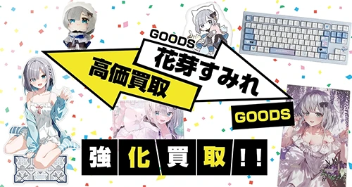 ぶいすぽっ!の花芽すみれグッズを買取いたします。アクリルスタンド、誕生日記念グッズ、周年記念グッズ、缶バッジ、タペストリー、VSPO GEARゲーミングキーボード、マウスパッドなど各種グッズを買取いたします。ぶいすぽっ!全体のグッズやLVGグッズ、コラボグッズの買取も大歓迎です!