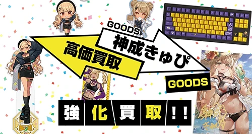 ぶいすぽっ!の 神成きゅぴ グッズを買取いたします。誕生日記念グッズ・活動周年記念グッズをはじめ、アクリルスタンド、タペストリー、缶バッジ、フィギュア、ポストカード、VSPO GEAR ゲーミングキーボードなど、各種グッズが買取対象です。