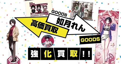 如月れんの記念グッズを買取強化中です。活動周年記念グッズ、誕生日記念グッズを買取しております。フルセットのグッズから一部のグッズのみの買取も大歓迎です!初期から最新の記念グッズの買取をお待ちしております。
