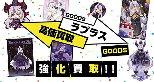 ラプ様の記念グッズを各種買取いたします。誕生日記念グッズ、活動周年グッズを買取します。グッズのフルセットの買い取りから一部のグッズのみもお売りいただけます。また、フルセット特典のポストカードの買取も大歓迎です。