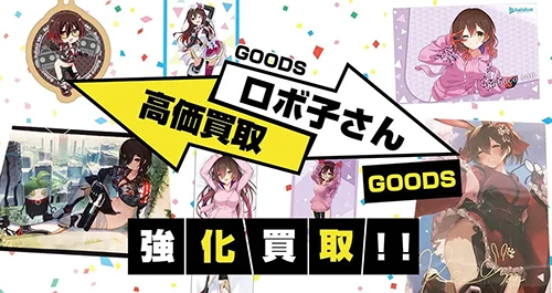 ロボ子さんの記念グッズを買取いたします。活動周年グッズ、誕生日記念グッズ、登録者数記念グッズを買取いたします。記念グッズの一部グッズの買取からフルセットグッズの買取、フルセットの特典グッズの買取も大歓迎です!
