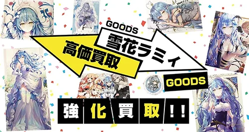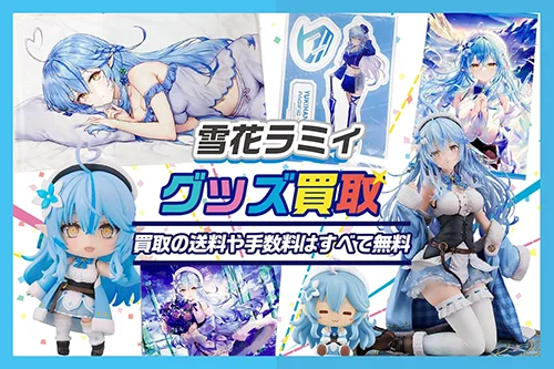 ホロライブ5期生のブルー担当の雪花ラミィちゃんのグッズを各種買取いたします。ホロライブのママ、顔が肝臓などいろいろな異名を持っています。キャラクターデザインはリン☆ユウ氏です。ASMR配信も精力的に行っており白銀ノエルともAMSRコラボしています。そんなラミィちゃんグッズを各種買取いたします。雪花ラミィグッズはもちろんホロライブ全体のグッズ買取も強化しております。